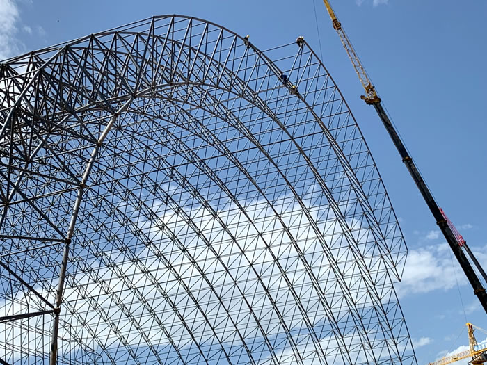 (2)网架加工前应对现场尺寸进行复测,确认无误后方可进行加工、安装;网架制作、运输、安装应遵守《空间网格结构技术规程》JGJ7-2010、《钢网架如皋螺栓球节点》JG/T 10-2009、《钢网架如皋螺栓球节点用高强度螺栓》 GB/T 16939-2016、《如皋钢结构如皋工程如皋施工规范》 GB50755-2012、《如皋钢结构如皋工程施工质量验收标准》 GB50205-2020。